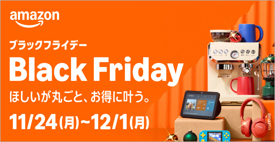 Amazonは、毎年恒例のビッグセールブラックフライデーを、今年は11月24日(月)から12月1日(月)まで開催します。今年のAmazonブラックフライデーでは、「ほしいが丸ごと、お得に叶う。」を…